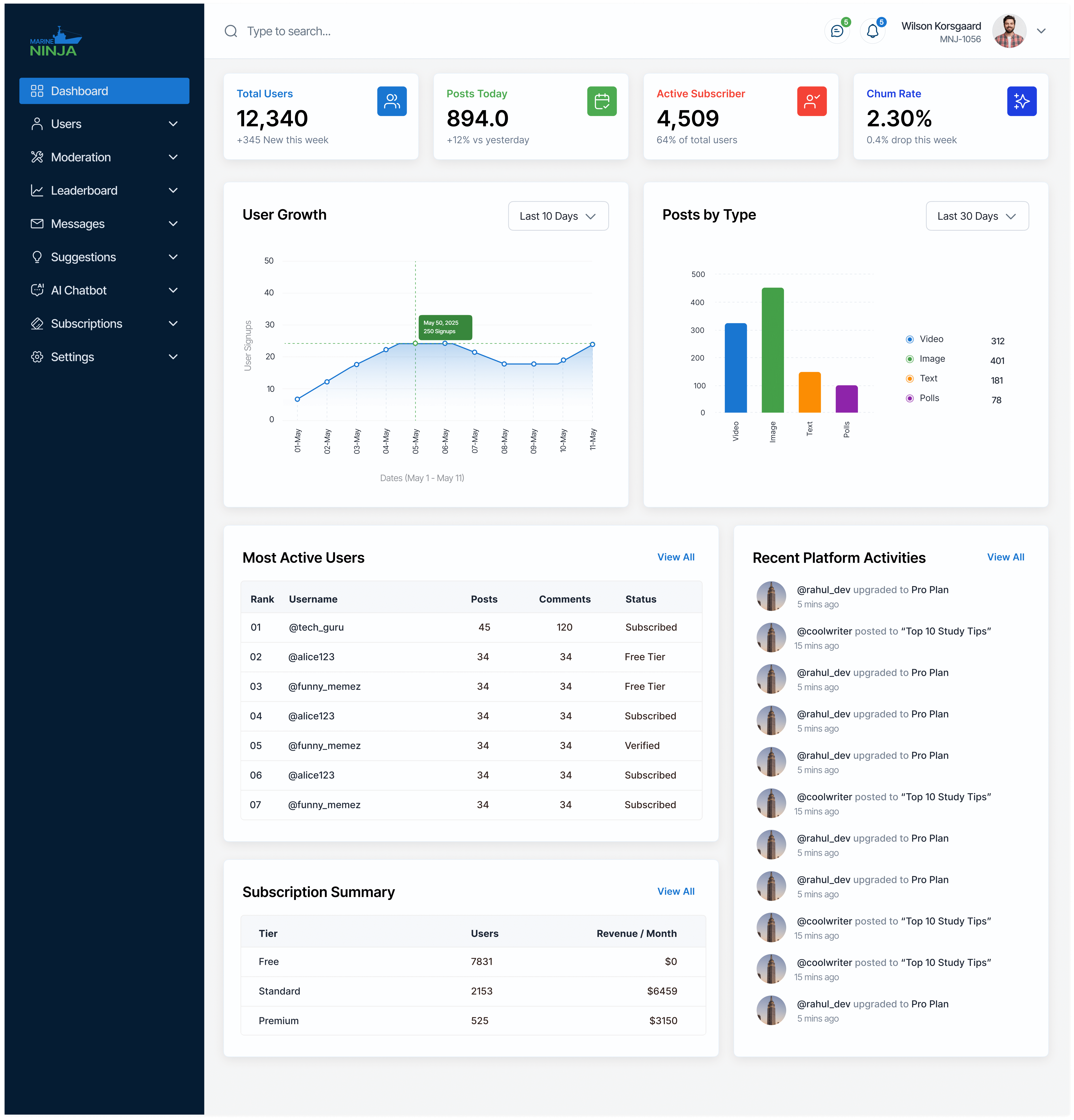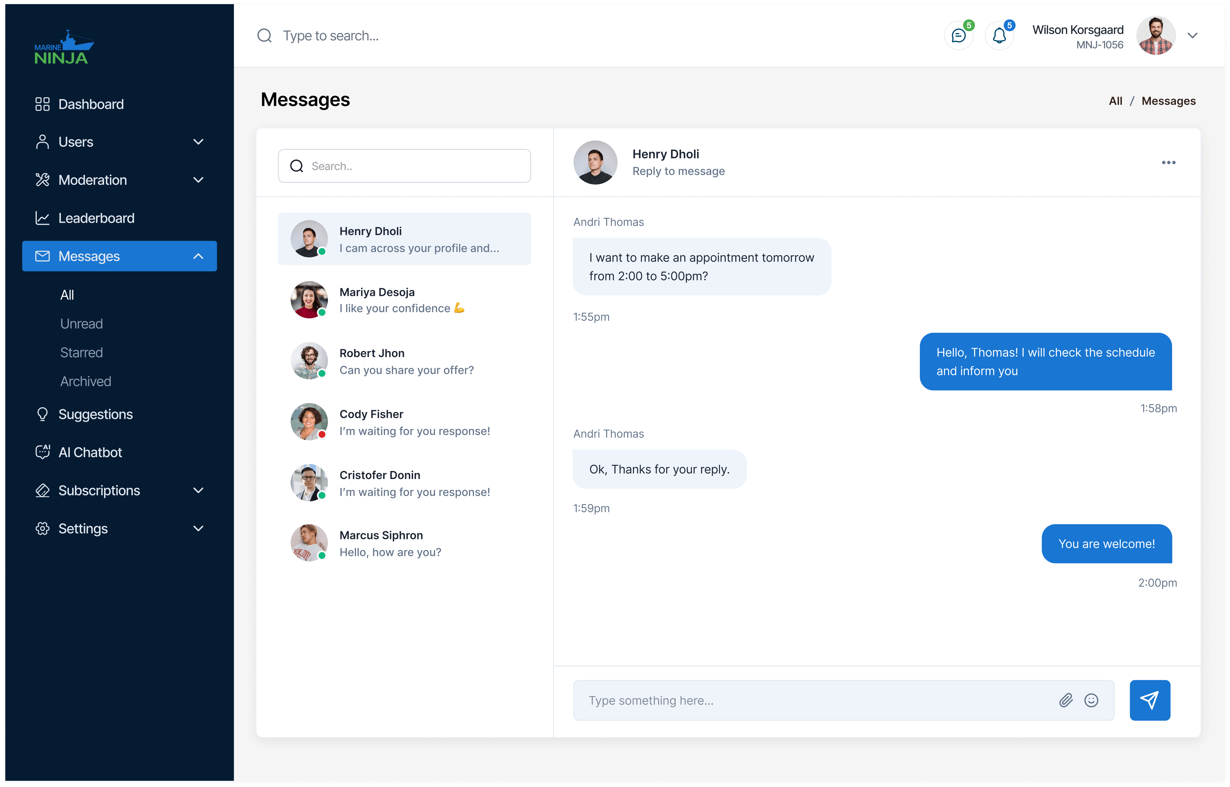The project aimed to design a web app for Marinode-AI Solutions, including both the user-facing platform and the admin interface. The web app serves as a community platform for seafarers and marine workers, providing social networking features, access to training materials, and real-time updates. The admin side allows trainers and operators to manage content, monitor users, and track engagement efficiently.