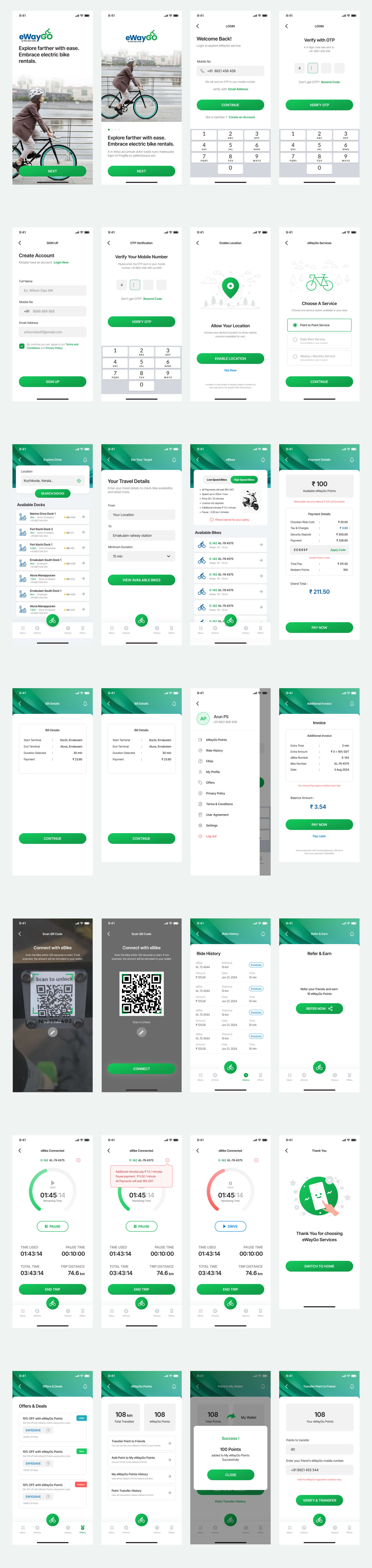 The project aimed to design a mobile app for eWayGO, a scooter rental service that allows users to travel across the city without owning a vehicle. The app enables users to book scooters with lock and unlock options, access loan-based rentals, make payments, plan routes across different locations, and view battery charge status. The first implementation was planned for Ernakulam city.