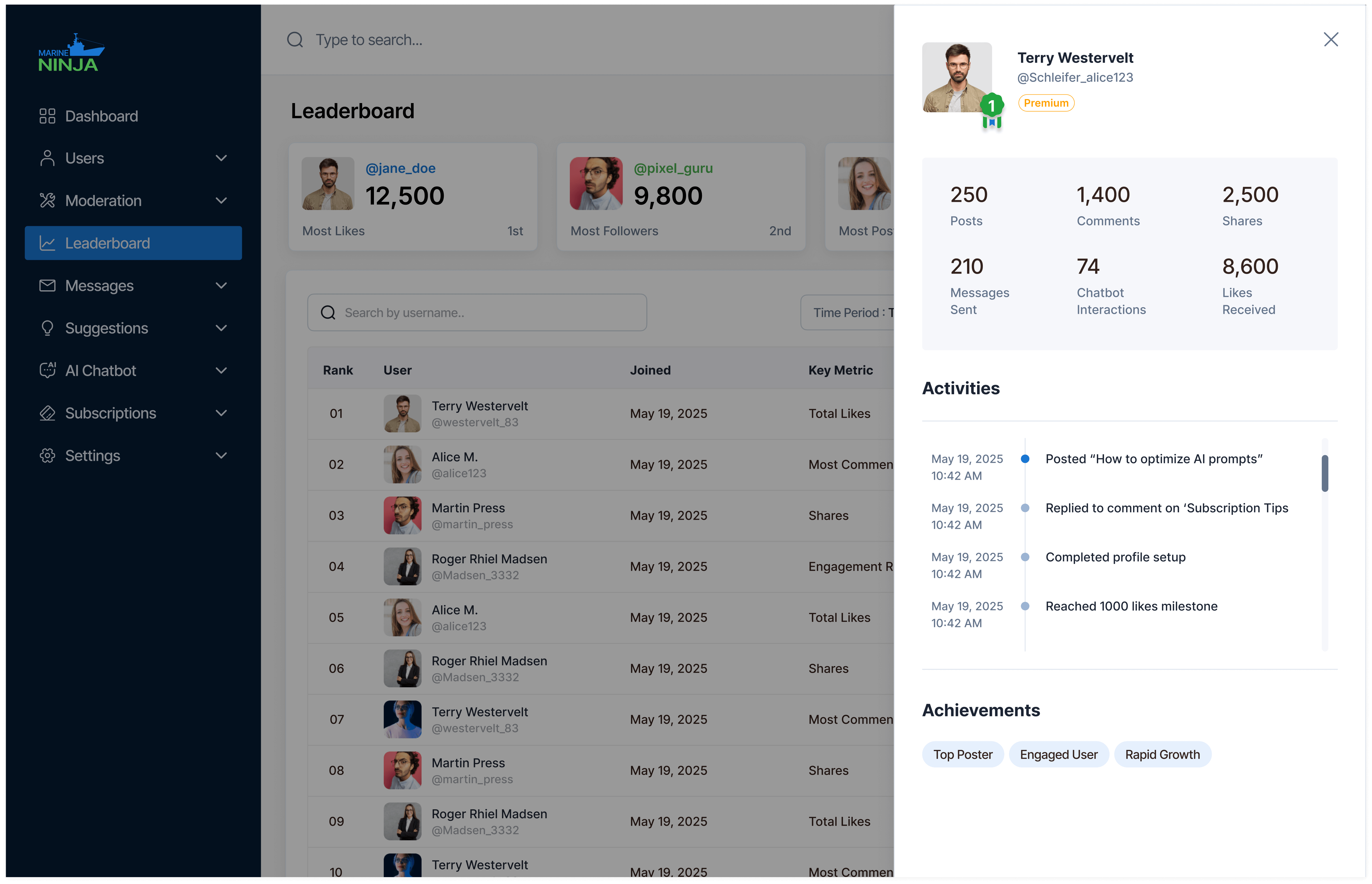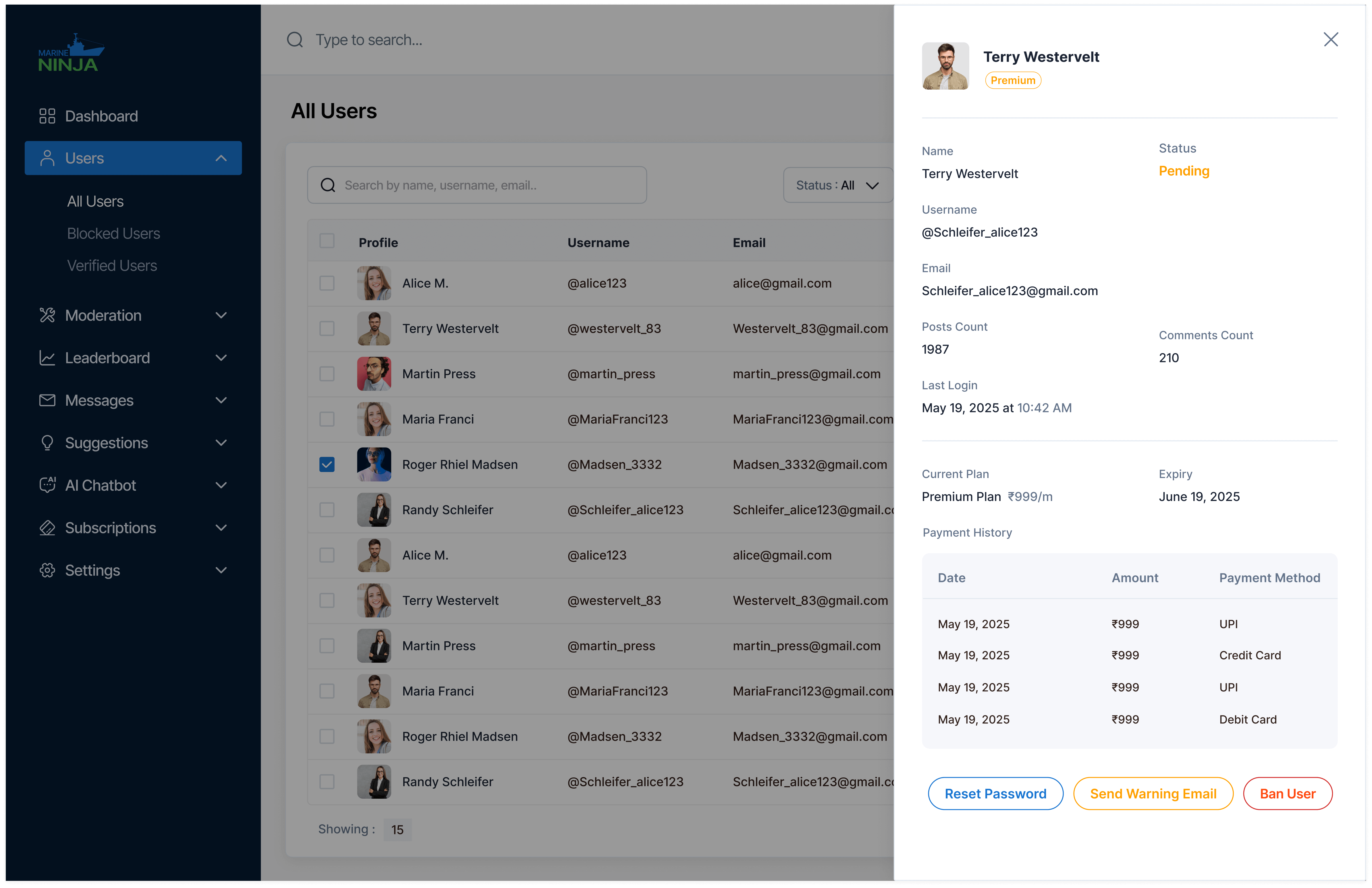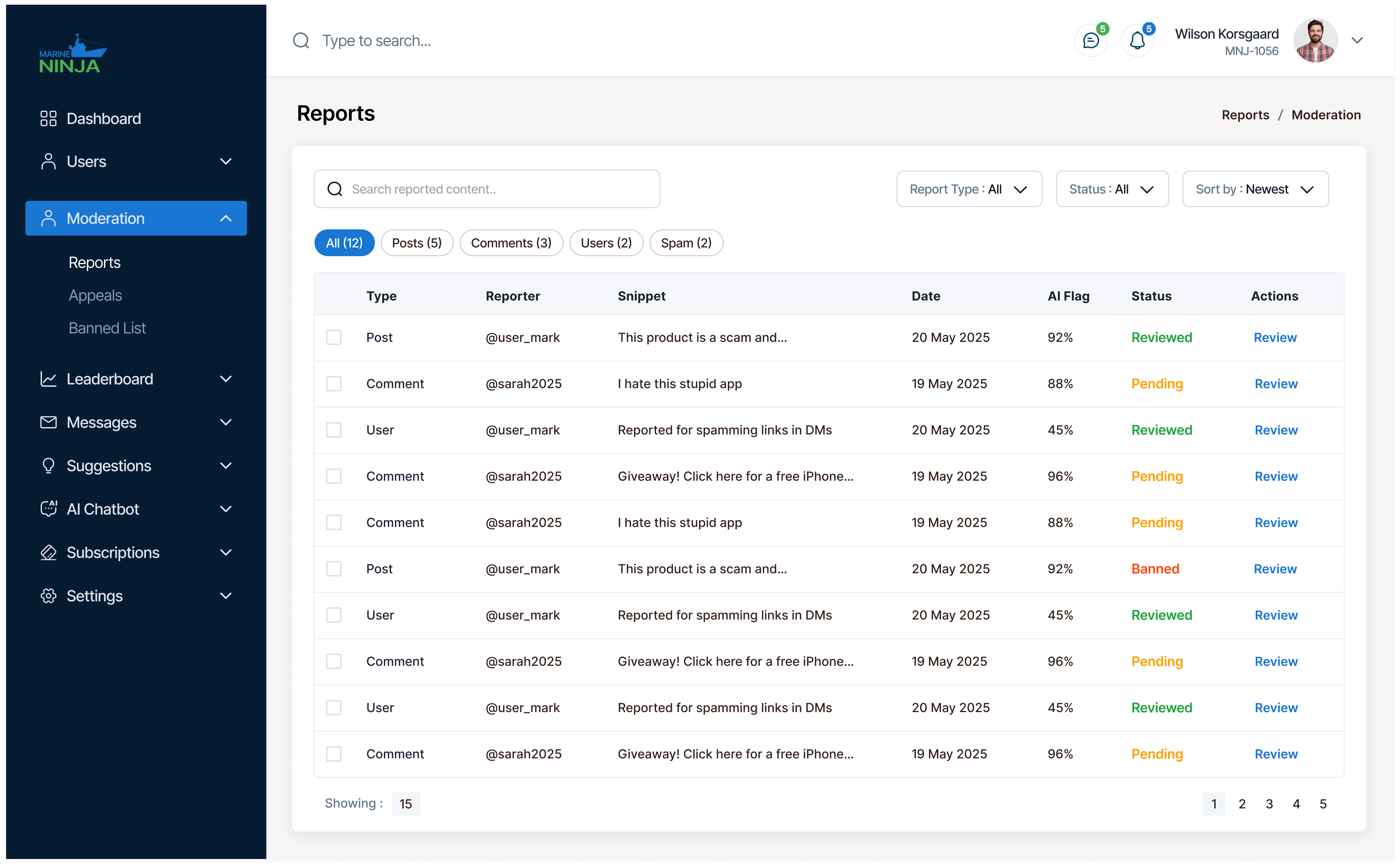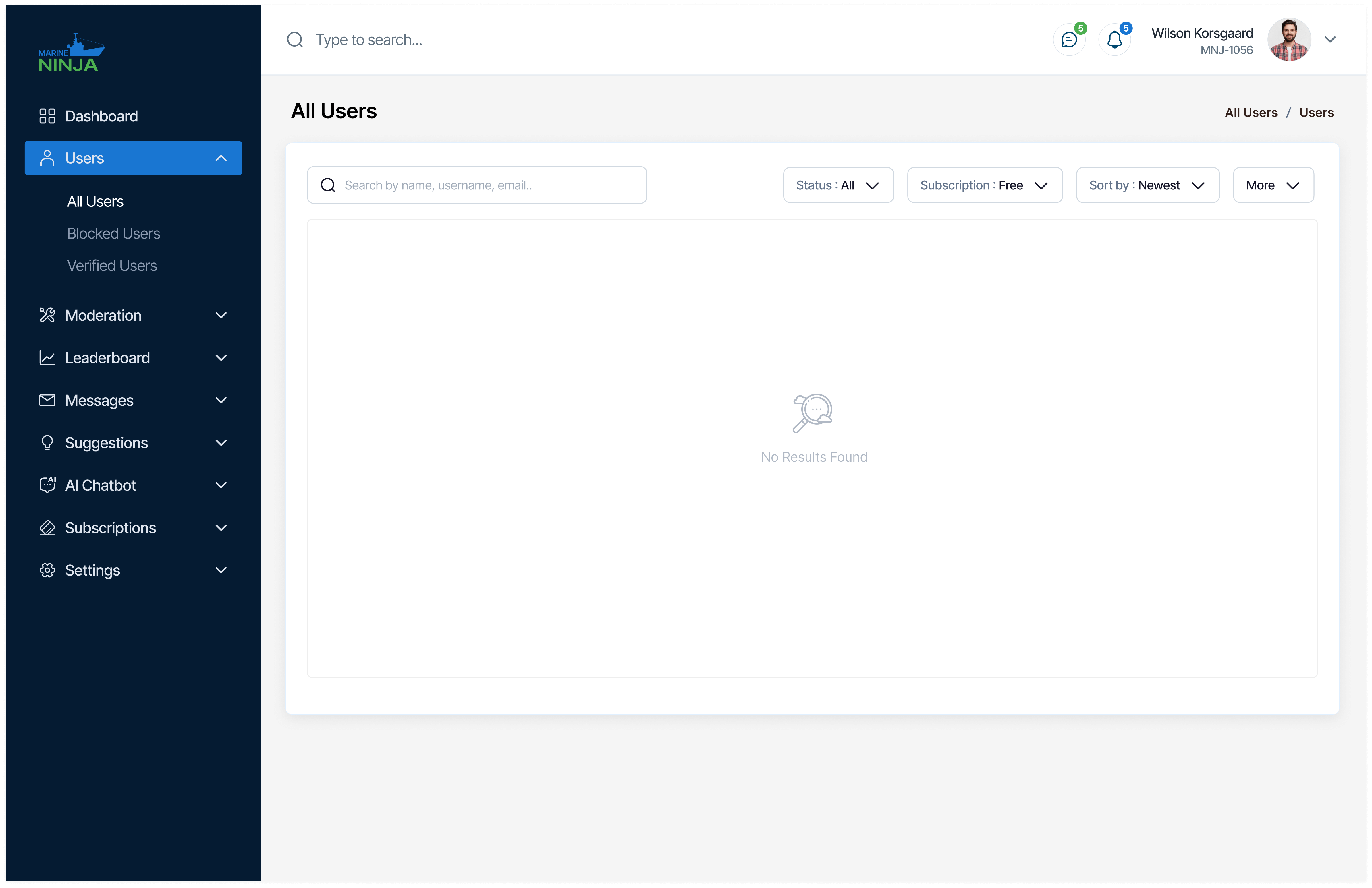 The project aimed to design a web app for Marinode-AI Solutions, including both the user-facing platform and the admin interface. The web app serves as a community platform for seafarers and marine workers, providing social networking features, access to training materials, and real-time updates. The admin side allows trainers and operators to manage content, monitor users, and track engagement efficiently.